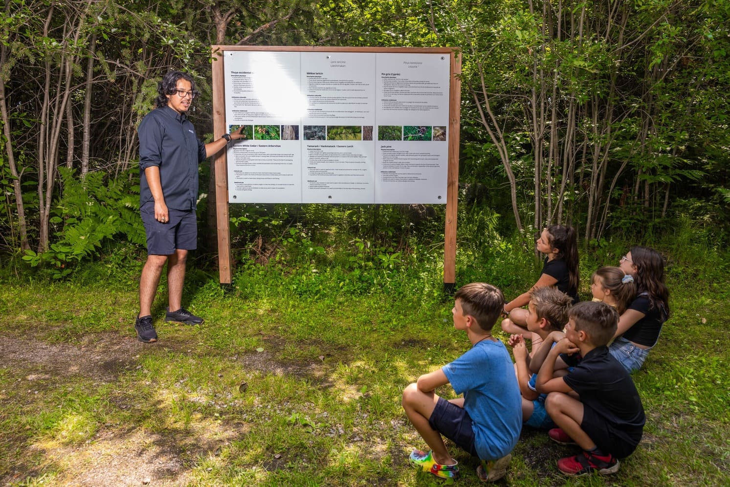 Avec ses 3200 mètres carrés dédiés à la protection et à la conservation de la biodiversité, notre site extérieur offre une expérience immersive unique, où les visiteurs explorent et découvrent les espèces d’arbres, de plantes et d’arbustes propres à la région du Saguenay-Lac-Saint-Jean. Accompagné d’un guide expérimenté, vous aurez l’occasion de découvrir les liens qui nous unissent, nous les Pekuakamiulnuatsh, à ce vaste territoire.